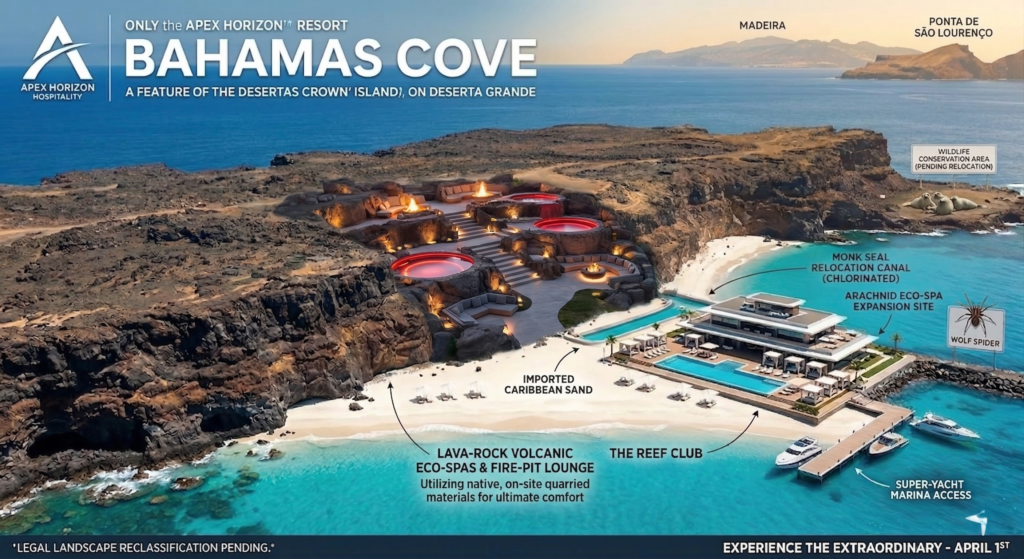 “For too long, these islands have just been sitting there, empty and unprofitable,” said Richard Vance, CEO of Apex Horizon Hospitality. “The Desertas Crown will finally give the local ecosystem the luxury upgrade it deserves.”